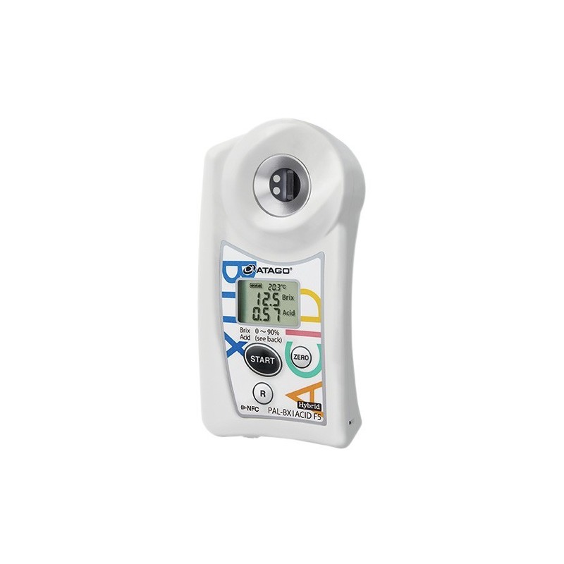 | Rango | Grados Brix: 0,0 a 90,0 % Ácido: 1L (Cítricos de Baja Acidez) 0.10~4.00% : 1H (Cítricos de Alta Acidez) 2.50~8.80% : 2 (Uva y Vino) 0.10~4.00% : 3 (Tomate) 0.10~3.00% : 4 (Fresa) 0.10~3.50% : 5 (arándano) 0,10~4,00 % 10,0 a 40,0 ℃ |