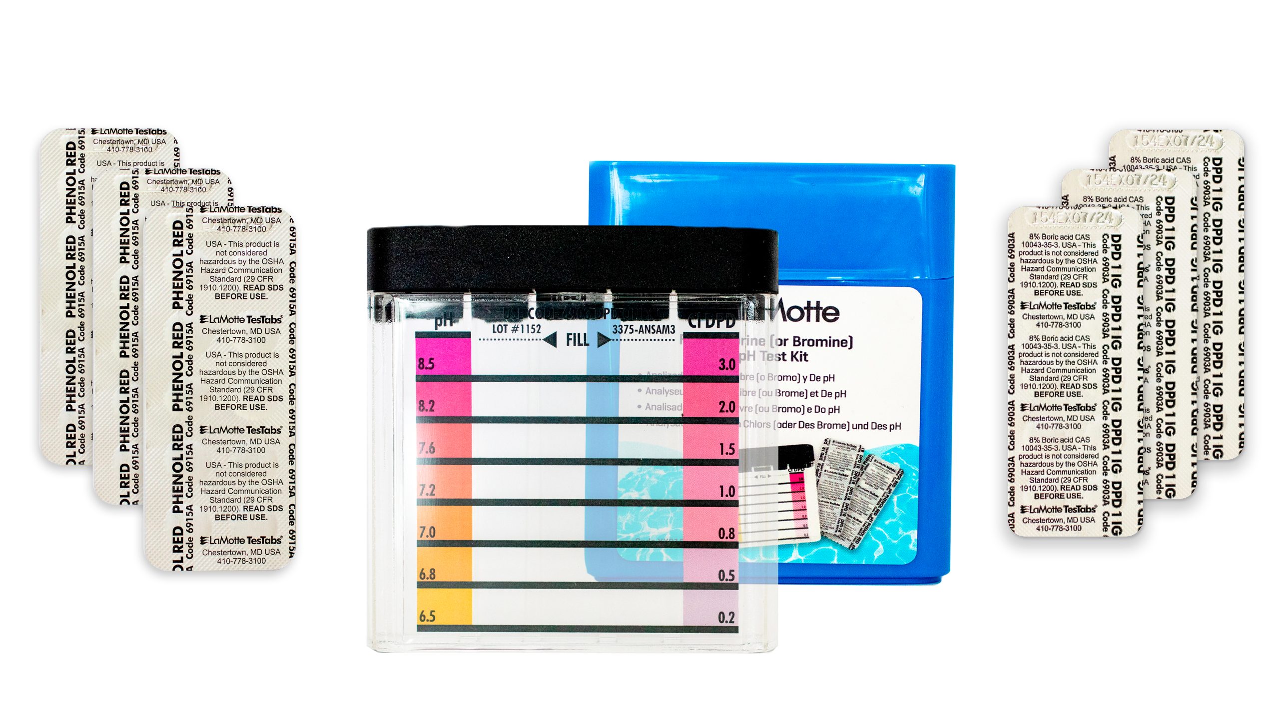 Kit comparador visual de dos pasos que emplea tabletas reactivas y el comparador DipCell para medir Cloro Libre o Residual y pH en agua potable, con rango de 0.2 3.0 ppm para Cloro Libre y 6.5 8.5 unidades de pH.