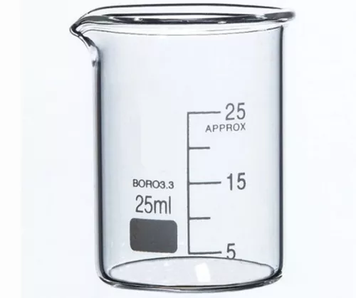 vaso precipitado tiene forma cilíndrica y posee un fondo plano de cristal de 25 ml .Perfectos para uso de laboratorio. Puede soportar altas temperaturas y choques térmicos